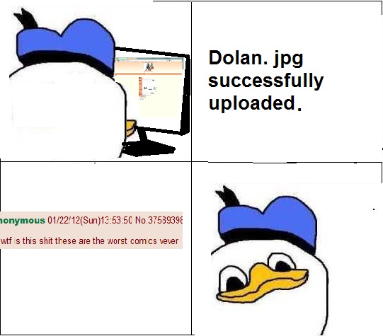 Below you will find links to Dolan comics that I personally saved from /b/ between 2010 to 2012, and have been on my hard drive ever since then; they are ones that I hand-picked back then because I found them to be extraordinarily funny. (The titles are my own, as these comics don't have official titles.)